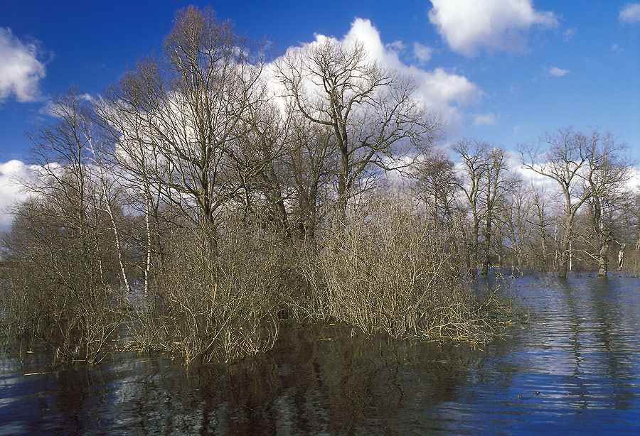 в один буйный, неистовый поток, не знающий берегов! Низины, ещё вчера покрытые глубокими снегами, за один день превращаются в бескрайние озёра. Пример тому - Виноградовская пойма - обширная низменность в междуречье Москвы-реки и небольшой речки Нерской. На две-три недели в году вся она скрывается под водой, лишь высокая насыпь железной дороги остаётся незатопленной. Смотришь из окна поезда - а кругом, до самого горизонта - старые дубы-великаны, стройные белые берёзки и заросли ивняка стоят посреди вешних вод...
