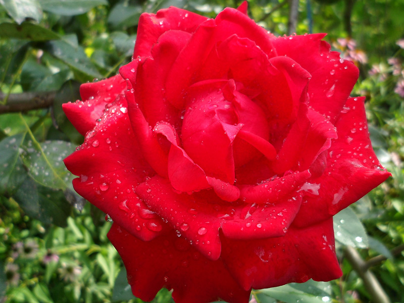 Комментарий. Одна из садовых роз, заботливо выращиваемых Анечкиной мамой на дачном участке. После дождя.