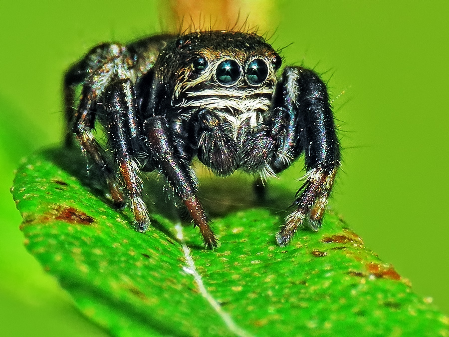 Подобно другим паукам, у скакунчиков (семейство Salticidae) восемь глаз, но их передние медиальные глаза настолько огромны, подвижны и выразительны, что пройти мимо просто невозможно. Единственная проблема в том, что эти создания очень малы, размером всего несколько миллиметров - чтобы рассмотреть (и сфотографировать) их во всей красе, потребуется немалое увеличение.