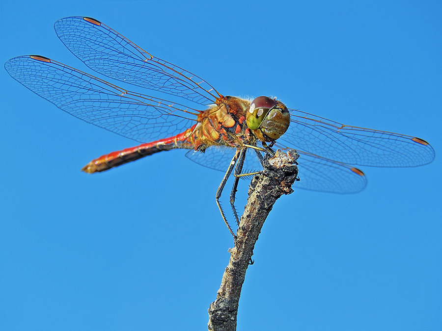 Комментарий. Самец стрекозы симпетрум кроваво-красный (Sympetrum sanguineum), так сказать, на "боевом посту".