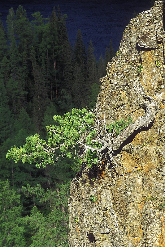 Здесь, на Подкаменной Тунгуске кедры успешно покорили крутые склоны и вершины базальтовых утёсов, проникая своими мощными корнями в малейшие трещины и дробя скальные породы!
