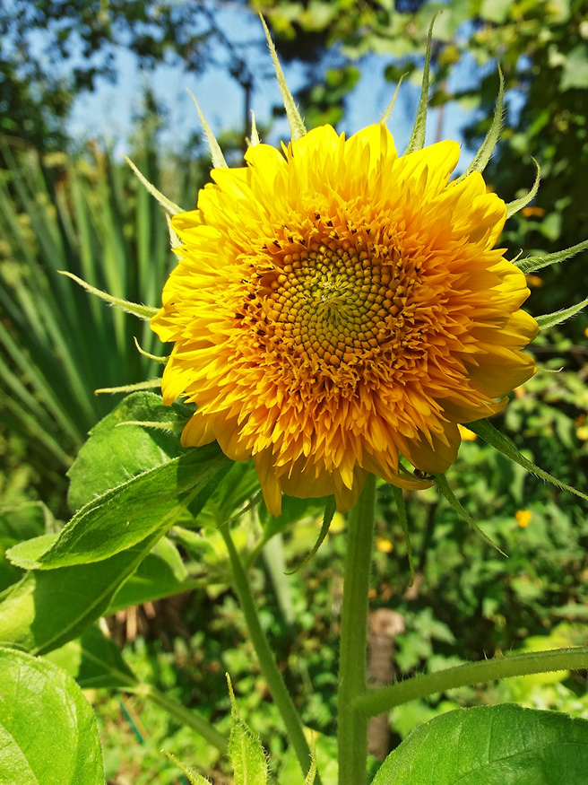 Комментарий. Декоративный махровый подсолнечник "Медвежонок Тедди" - снимок, сделанный Анечкой на дачном участке солнечным летним днём.