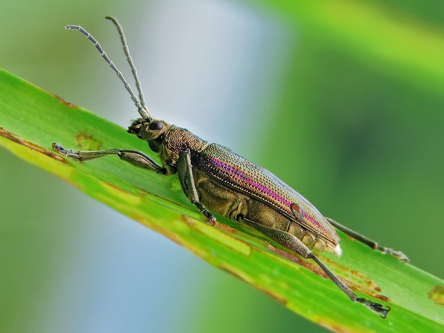 Ранним утром, среди прохлады и сырости, застыл он в ожидании тепла в необычной позе на листе тростника.